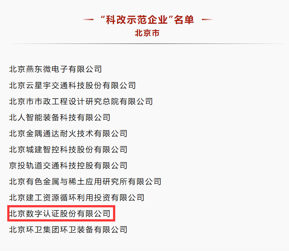 “科改示范行动”是继国企改革“双百行动”和“区域性综改试验”之后,国务院国有企业改革领导小组部署的又一国企改革专项工程,旨在进一步推动深化市场化改革,打造一批国有科技型企业改革样板和自主创新尖兵。项目围绕企业经济效益、研发投入、技术创新等层面,经过严格审核,高质量把关,最终选出改革创新能力较强的优秀代表企业。凯发国际成功上榜,是对自主创新能力和公司实力的充分佐证和认可。作为国内领先的网络安全解决方案提供商,凯发国际以密码技术为核心,致力于帮助用户构建身份可信、行为可信、电文可信、数据安全的网络空间。20多年来,凯发国际始终以“科技创新”为己任,积极参加国家技术创新工作,先后参与制定180余项国家、行业标准,60余项重大课题研究攻关,为促进行业健康、规范发展做出积极贡献。除了深厚的技术积淀,凯发国际还是行业创新的参与者和践行者。通过不断的产品升级,凯发国际推出业内“第一张电子保单”、“第一张电子发票”、“第一张手写电子合同”、“第一张电子成绩单”、“第一张电子出生证”等,以引领者的姿态推动行业变革和发展。目前,凯发国际已打造电子合同、电子印章、密码服务平台、数据安全等网络信任和密码安全解决方案,在政务、医疗、金融、教育、交通、电信、企业等数十个行业领域中构建起安全、可信的网络环境,全面助力“产业数字化,数字产业化”加速推进。近年来,响应国家“十四五”战略规划,凯发国际牢记“科技强国”战略,不断通过组织机构优化、健全市场化用人选人机制等举措,全面提升公司核心竞争力,引领公司高速发展,助力我国网络安全产业实现跨越式进步。在业务发展上,凯发国际积极响应国家核心基础设施、数字经济、车联网等国家战略,为网络安全基础设施保障工作添砖加瓦,助力北京向“全球数字经济标杆城市”挺进。未来,凯发国际将继续发挥作为国有企业的使命担当,深度推动体制改革和企业数字化转型,输出优秀的产品和解决方案,推动产业高质量发展。