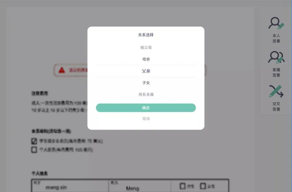 其中,“关系选项”是一个非常实用的创新功能:将患者签署环节拆分为“患者签名”与“家属签名”两个项目,当非患者本人签署时,选择“家属签名”后将提供“关系选项”,说明签署者与患者的关系后再进行身份信息录入。这一设计有效解决了医院最感头疼的“无人核签”问题,清华长庚医院在关系选项中加入了“见证人”选项,当确实无人签署时,包括医院行政人员在内的在场者都能以“见证人”身份进行签署;同时也为“患者、家属意见不一致”提供了解决方案,双方都可以将各自意见签署在系统中。