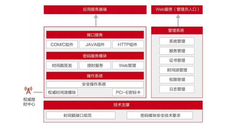 用于医疗信息化、电子政务、网上招投标、网上交易、知识产权保护等场景,通过集成时间戳服务器,签发 可信时间戳,为应用提供可信时间服务。