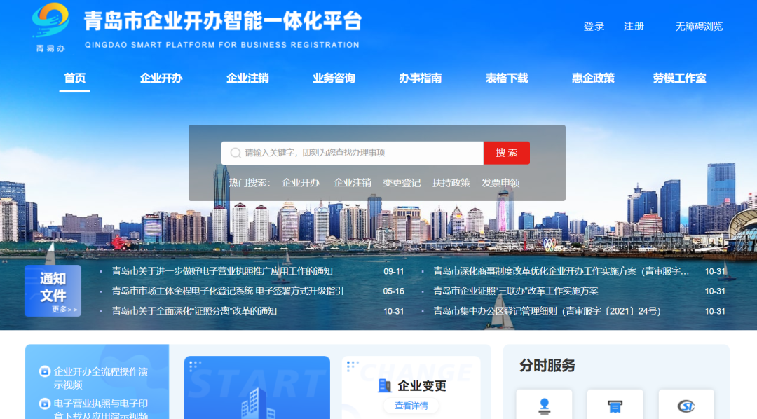 青岛市企业开办智能一体化平台